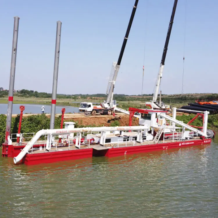 Vårt företags kuttersugningsmaskin för flodsand med cummins dieselmotor är självgående eller icke-självgående, bärbar kuttersugningsmaskin för flodsand med cummins dieselmotor. Skrovet använder demontering och lådliknande struktur och dess demonteringstyp kan enkelt monteras på arbetsplatsen och transporteras på väg, järnväg och container i enlighet därmed, bekvämt vid installation och arbetsplats som flyttas från en till en annan. Kraftsystemet kan utformas för elsystem eller dieselmotordrivsystem enligt kundernas krav. Utrustning på kuttersugningsmaskinen för flodsand med cummins dieselmotor är som bälg: traversanordning, kutterstegelyftanordning, spuddar och däckskran.